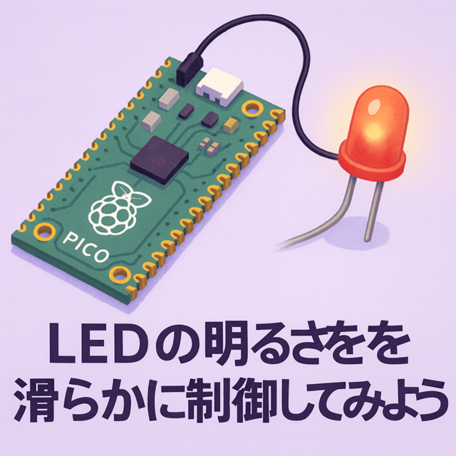 この記事では、Raspberry Pi Pico と MicroPython を使って、LED1個の明るさを滑らかに変えるプログラムを作ります。