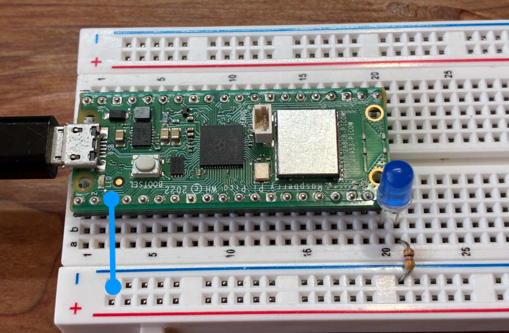 その青いラインをPicoのGNDに接続していなければ、回路としては未完成です。
