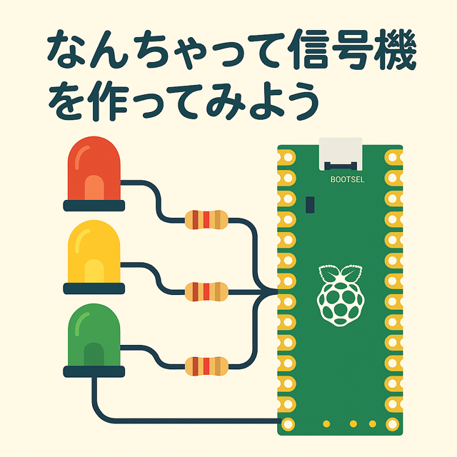 今回はRaspberry Pi Picoを使って、3つのLEDを信号機のように順番に点灯させる方法を紹介しました。**Lチカ**(LED点滅)から一歩進んで複数のLEDを扱ってみることで、GPIOピンを複数使う方法や、プログラムでの繰り返し処理の書き方を学べたと思います。最初は配線が増えて戸惑うかもしれませんが、「やること自体はLED1個のときと同じなんだ」と理解できれば怖くありませんでしたよね?